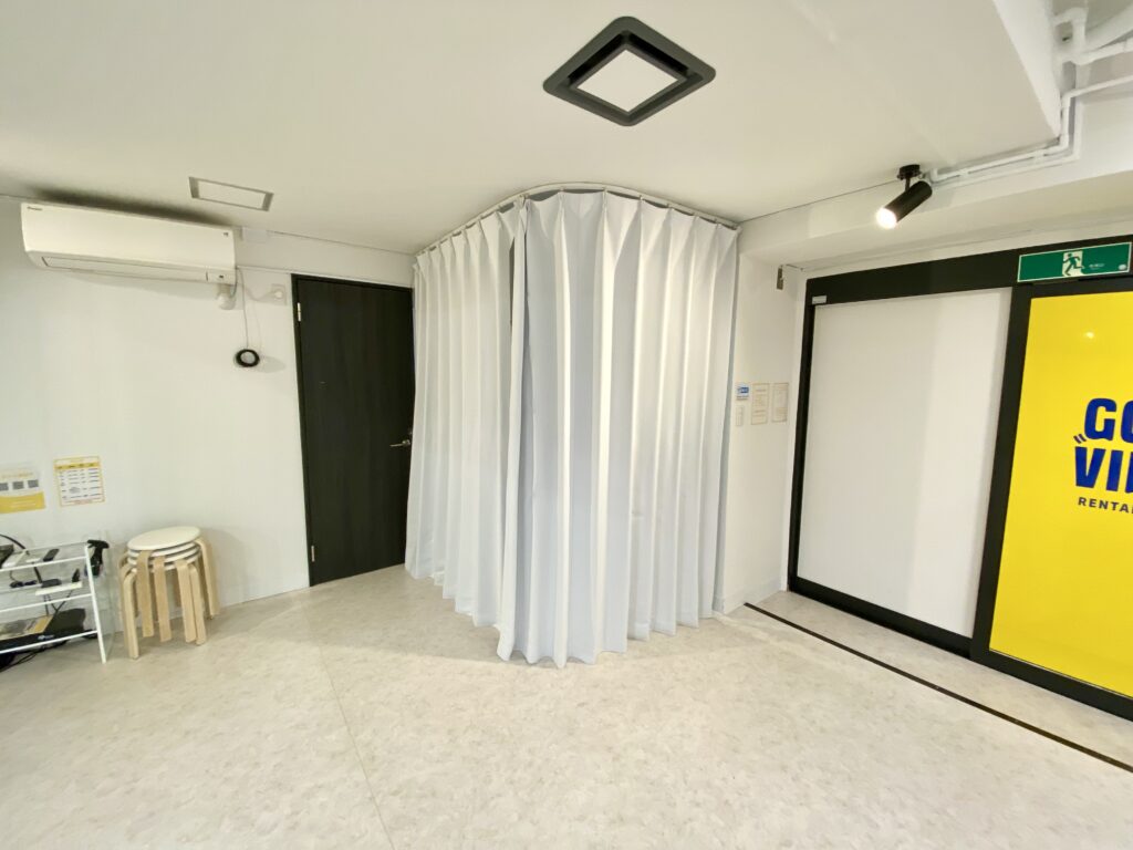 スタジオ内には、カーテンでしっかり仕切れる専用の着替えスペースを完備しています。