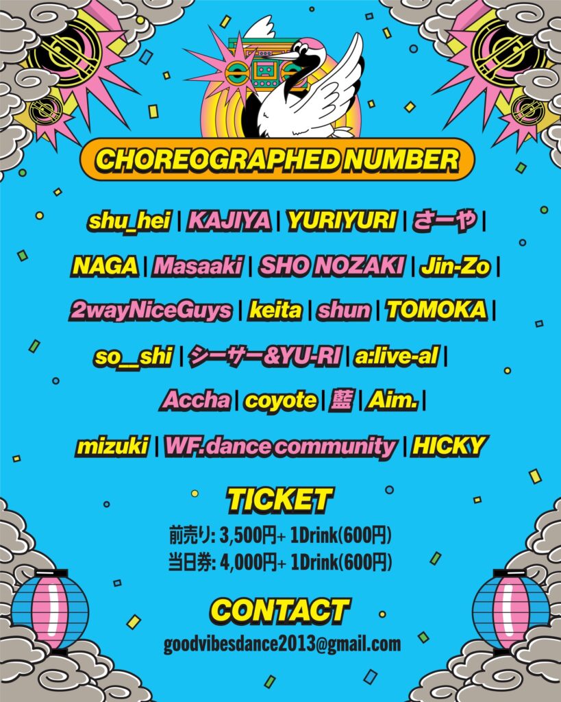都内にてプロダンサーや今からダンサー目指す方や社会人ダンサー・学生さんの振付者を募りダンスナンバー作品を作成してステージで踊って頂くイベントとなっております。